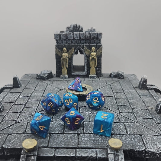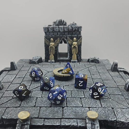 Blue and Gold 7 Piece Boxed Dice Set for Role play Gaming
