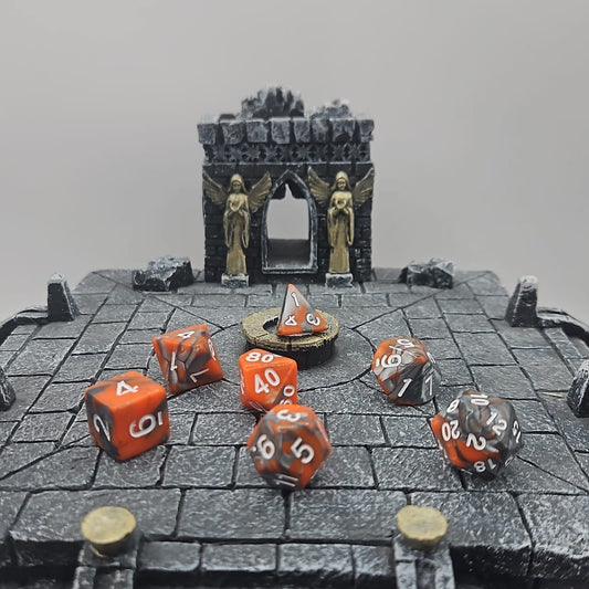 Orange and Silver 7 Piece Boxed Dice Set for Role play Gaming