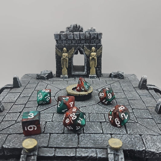 Green & Red 7 Piece Boxed Dice Set for Role play Gaming