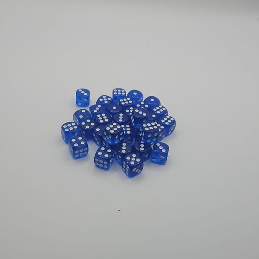 Pack of 100 Transparent Six sided Dice (D6) - Blue