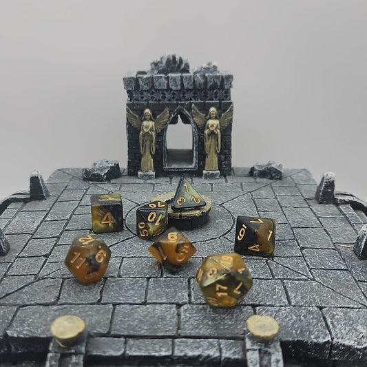 Gold and Black 7 Piece Boxed Dice Set for Role play Gaming
