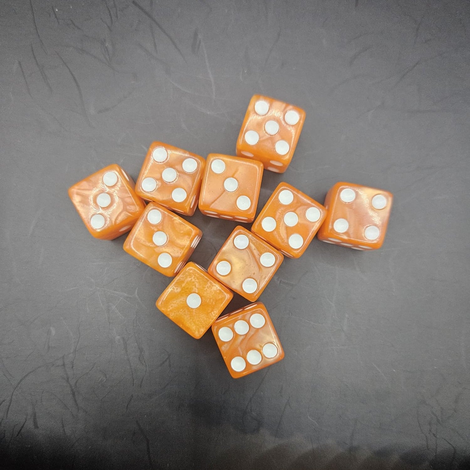 10 Pack of 16mm Acrylic D6 Light Orange Pearl Straight Edge