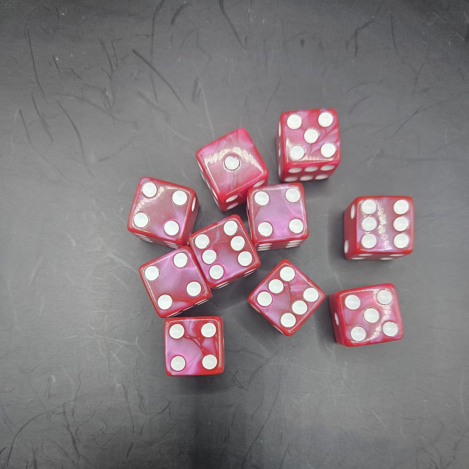 10 Pack of 16mm Acrylic D6 Light Red Pearl Straight Edge