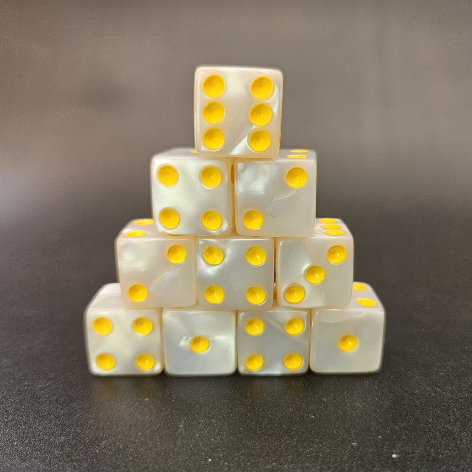 10 Pack of 16mm Acrylic D6 White Pearl Straight Edge