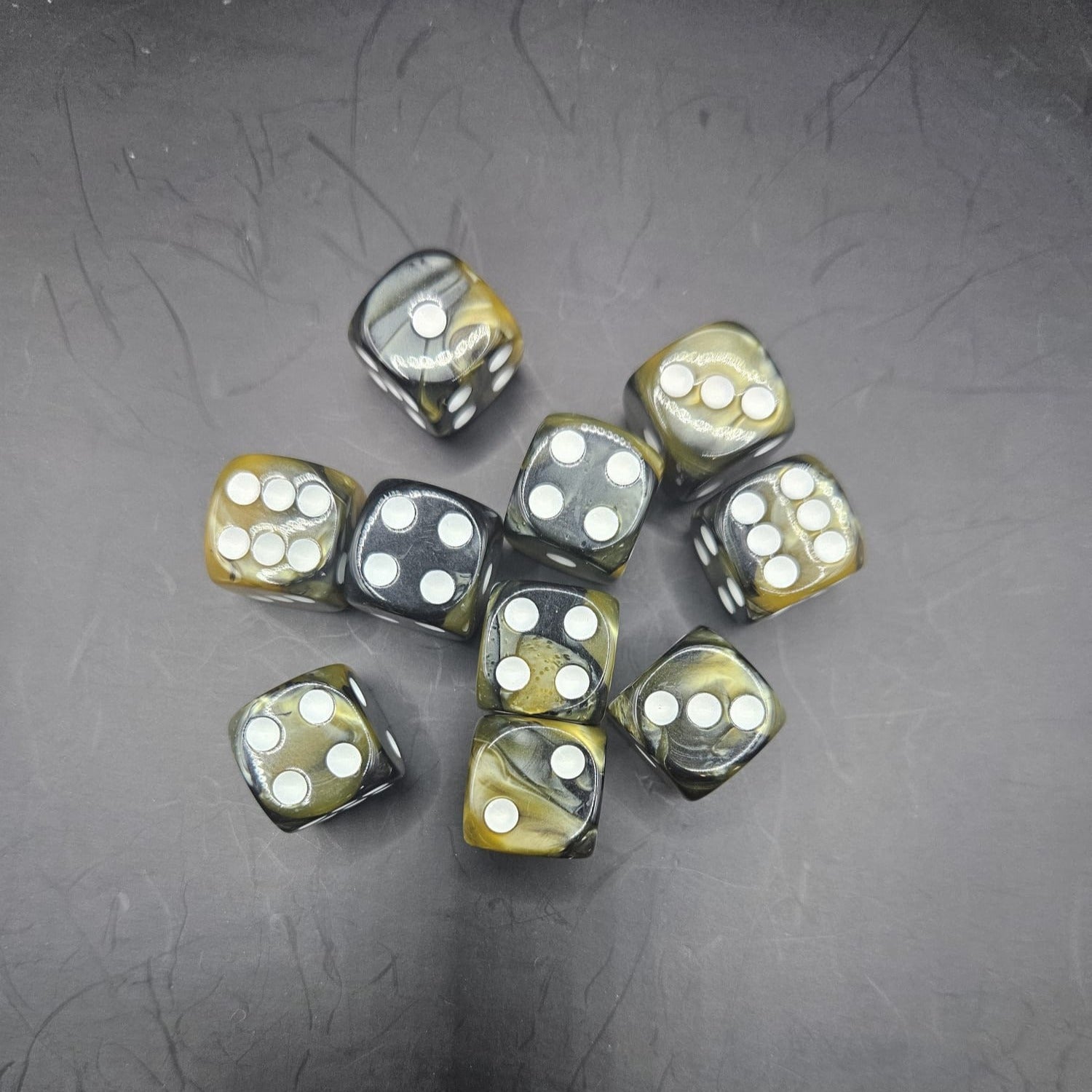 10 Pack 16mm Two Colour Acrylic D6 Gold & Black