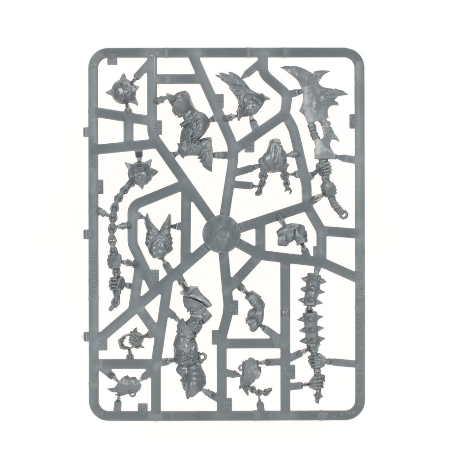 This multipart plastic kit builds three Weirdbrute Wrekkaz – berserker orruks infused with magical madness. These fearless fighters race into battle without the heavy breastplates worn by most Ironjawz, wielding deadly chain-smasha flails. Each Wrekka wears a terrifying Weirdbrute mask of iron and bone – the kit includes six different masks for your orruks, allowing you to customise your maniacal mob.