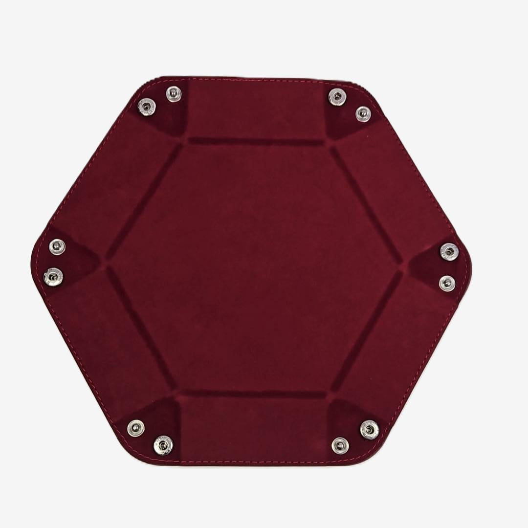 Claret Hexagonal Folding Dice Tray with Black PU Leather backing