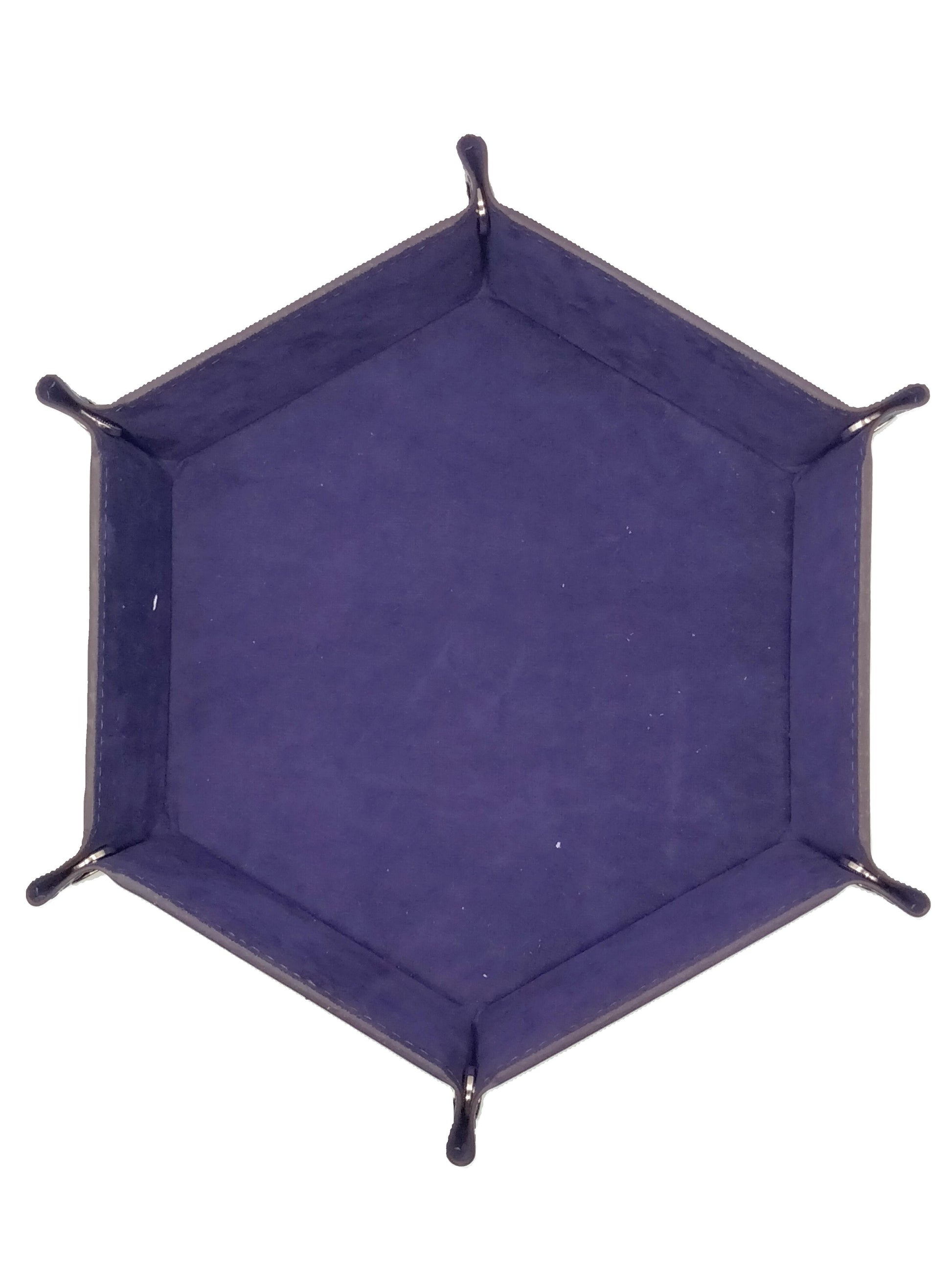 Deep Purple Hexagonal Folding Dice Tray with Black PU Leather backing