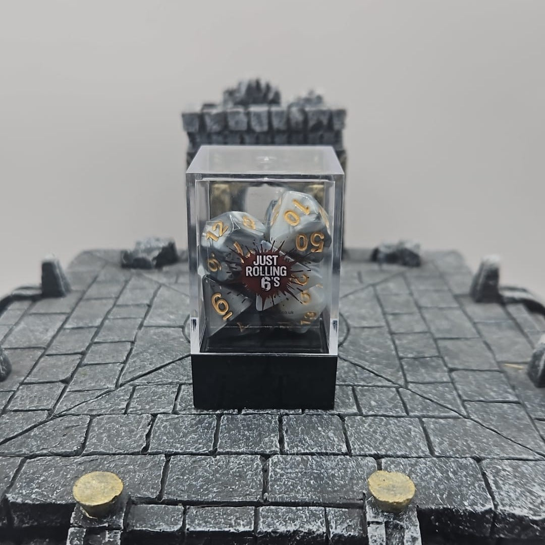 Silver and Pearl 7 Piece Boxed Dice Set for Role play Gaming